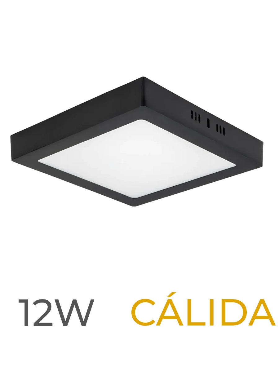 LUMINARIA LED MARCO NEGRO DE SOBREPONER 12W CALIDA CUADRADA