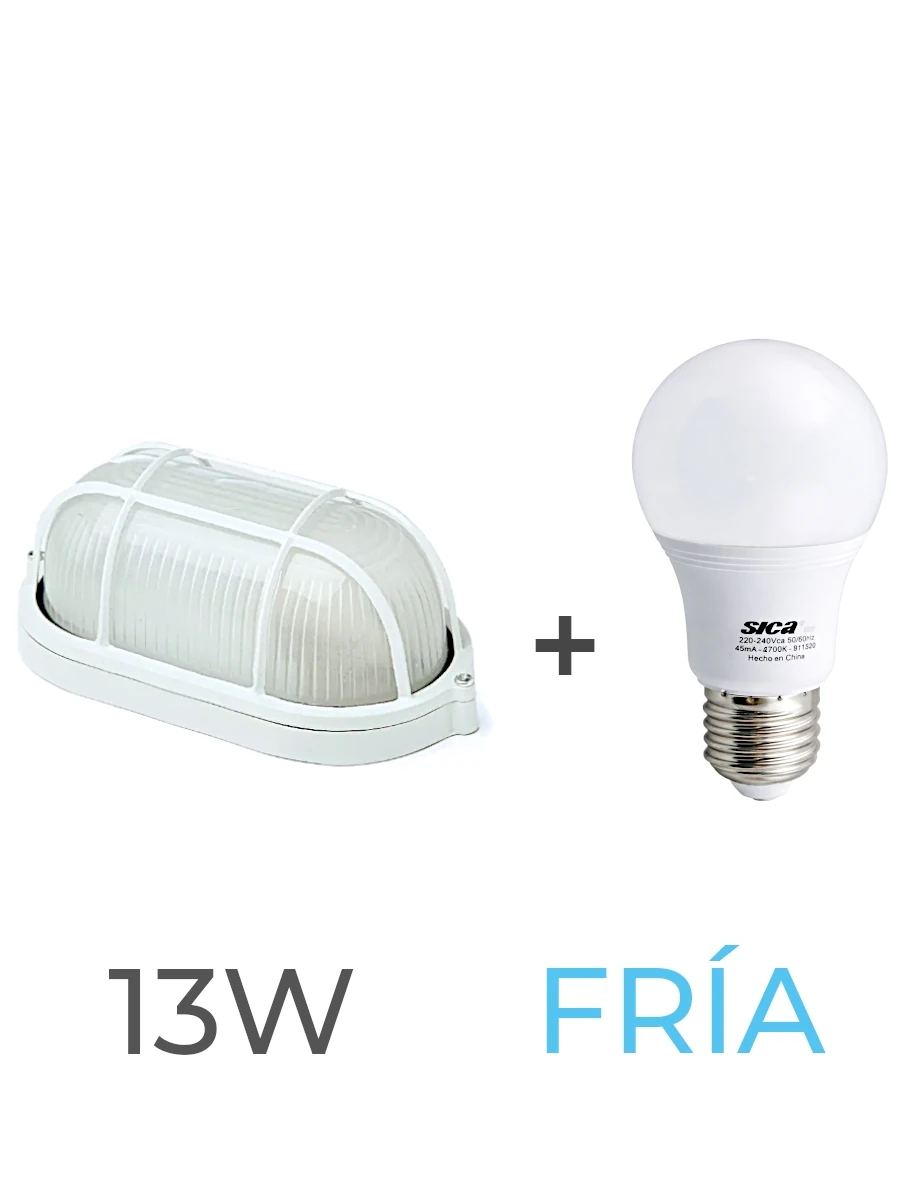 TORTUGA OVALADA BLANCA ALUMINIO + LAMPARA LUZ FRIA 13W SICA